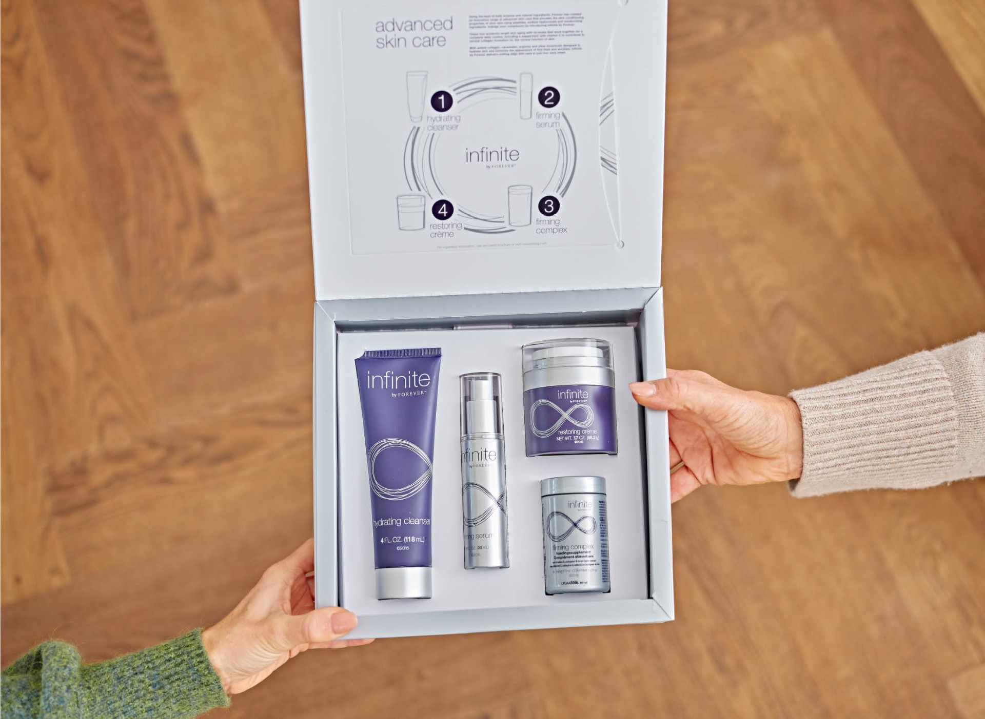 Drei Hautpflegeprodukte und ein Nahrungsergänzungsmittel unterstützen Anti-Aging von innen und außen. Nach neuesten wissenschaftlichen Erkenntnissen und auf Basis natürlicher Inhaltsstoffe, hat Forever diese innovative Pflegeserie entwickelt, bei der die pflegenden Eigenschaften der Aloe Vera voll entfaltet werden. Das Resultat? Strahlende, geschmeidige Haut, die jünger aussieht und sich jünger anfühlt.